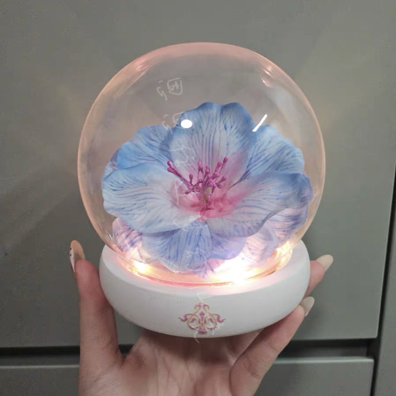 The crystal globe is handcrafted and made to order. Minor imperfections are normal by default.
