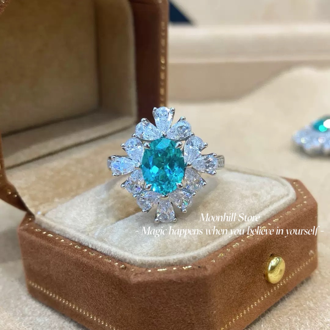 S925 Silver Lab-Created Paraiba Ring | 2 Carat Oval Cut Women’s RingS925 Silver Lab-created Paraiba Ring | 2 Carat Oval Cut Women’s Ring